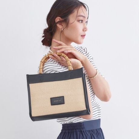 バンブーハンドルスクエアミドルトートバッグ【2WAY】