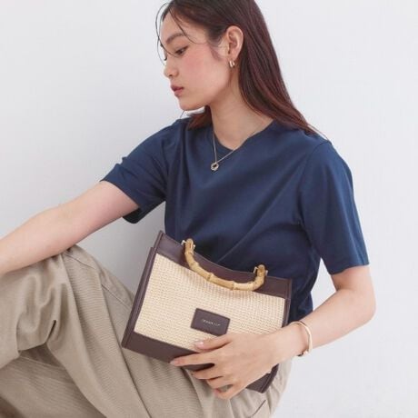 バンブーハンドルスクエアミドルトートバッグ【2WAY】