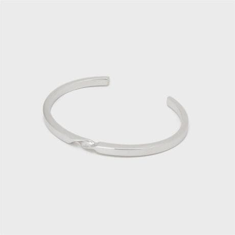 金属にひねりを加えたような、流れるようなフォルムが美しいバングル。