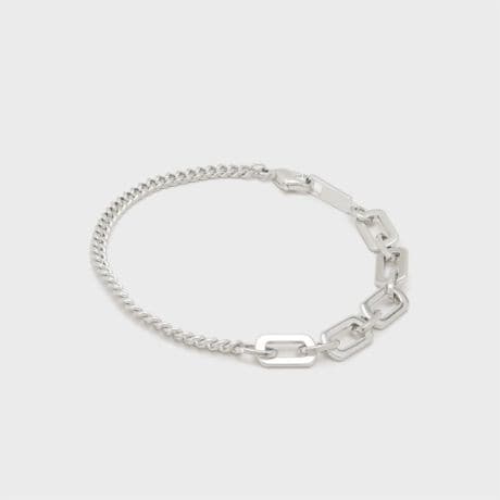 エッジの効いたスクエア型のコマと、ベーシックなチェーンを半分ずつ組み合わせたコンビネーションデザイン。