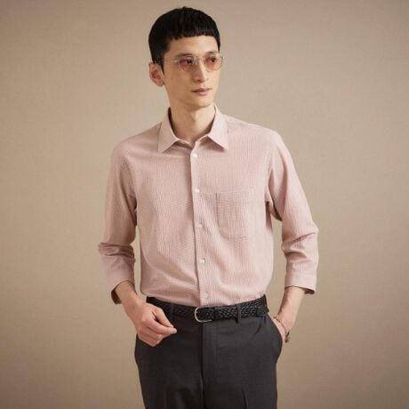 通気性、ストレッチによる伸縮性のあるシアサッカー素材が夏の快適なシャツを演出します