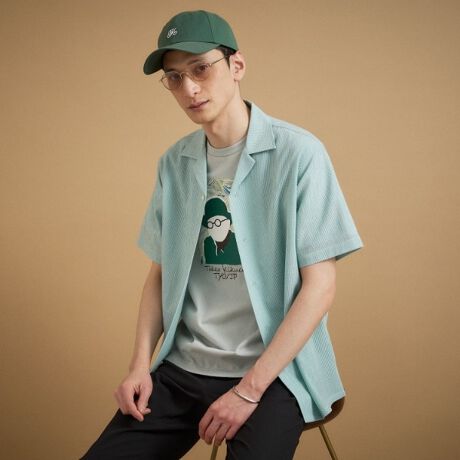 【通気性】トリコットサッカー オープンカラー シャツ