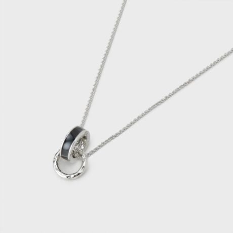 細身の美しいチェーンに、シンプルな2つのリングが重なり合うように配置されたペンダントタイプ。