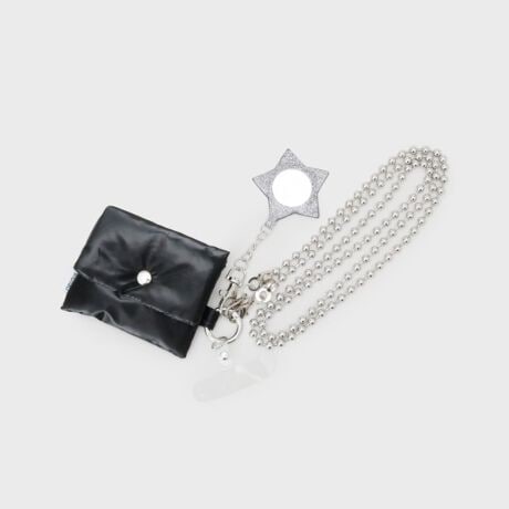 ミラーチャーム&ミニポーチ付き ボールチェーンスマートフォンショルダーストラップ