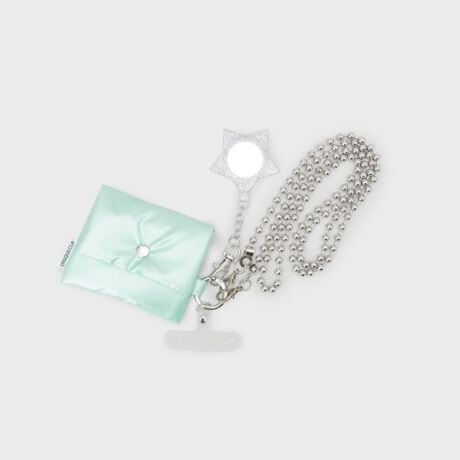 ミラーチャーム&ミニポーチ付き ボールチェーンスマートフォンショルダーストラップ