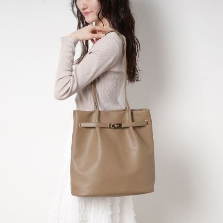 フロントのベルトモチーフが洗練されたアクセントになり、通勤からデイリーまで幅広く活躍します。