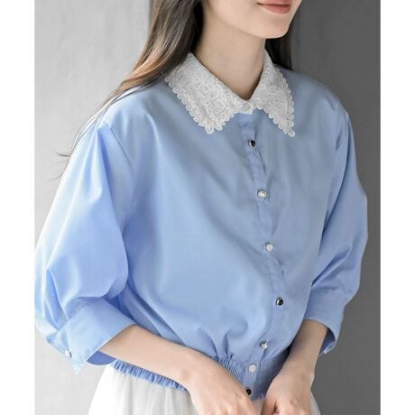 レース衿6分袖ブラウス