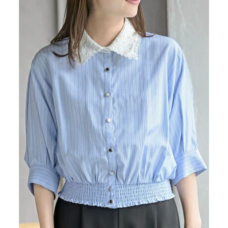 レース衿6分袖ブラウス