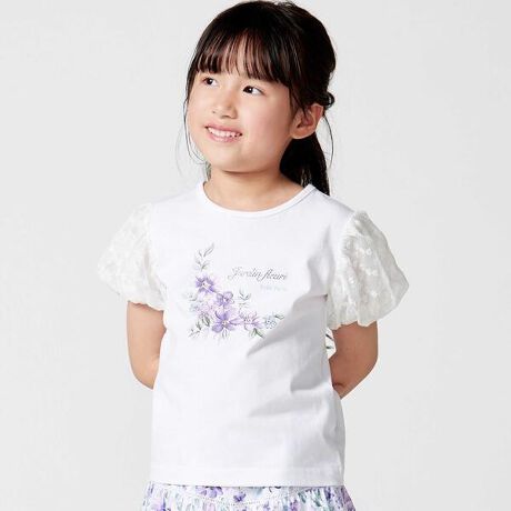 袖部分は透け感が爽やかな印象の刺しゅうレースのシフォン生地を使用しています。