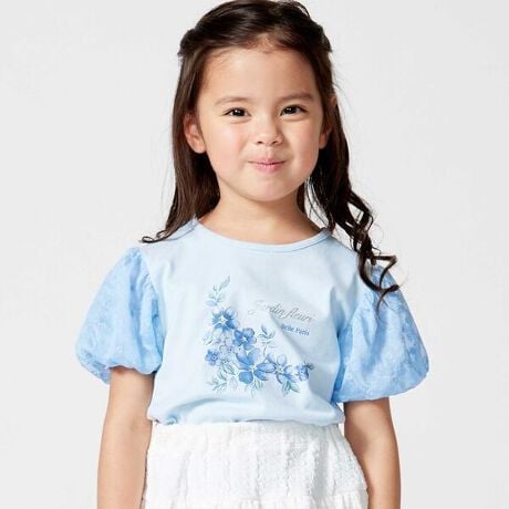 袖部分は透け感が爽やかな印象の刺しゅうレースのシフォン生地を使用しています。