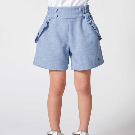 上品な雰囲気のリネンのような風合いのキャンバス生地ショートパンツ。