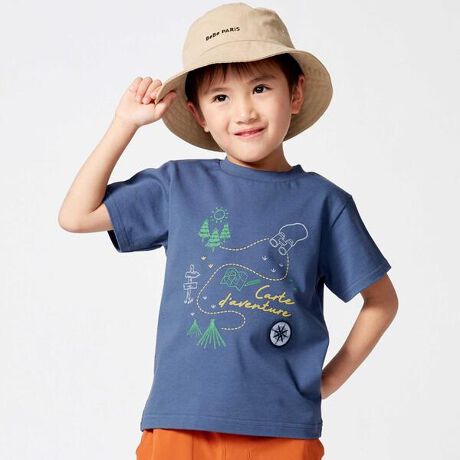 冒険をイメージしたPOPな図案がかわいい半袖Tシャツ。