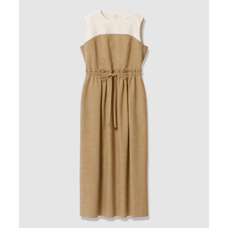 配色の切り替えがポイントの、通勤にも活躍できる大人ワンピース。シャリ味と清涼感のあるリネンの様な風合いの合繊素材なので、シワにもなりづらく爽やかな着心地の一枚となりました。ウエストのドロストリボンでウエストマークも出来るので、キレイ目のスタイルからカジュアルコーデまで幅広く活躍するワンピースです。キッチリとしたジャケットは勿論、デニムブルゾンとスニーカー合わせで抜け感のある大人カジュアルも楽しめます。