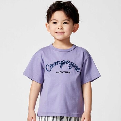 ミックスカラーのコードを使用したロゴでトレンド感のある半袖Tシャツ。