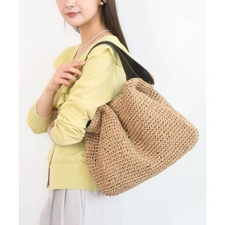 くったりとしたフォルムがスタイリングになじむペーパー素材のカゴバッグ。シンプルな素材と形でスタイリングにも合わせやすい。A4サイズも収納できる嬉しいサイズ感は、ロングショルダーも付いていて斜めがけもできます。