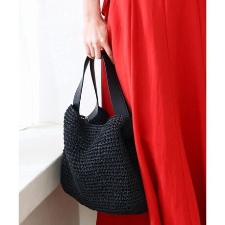 くったりとしたフォルムがスタイリングになじむペーパー素材のカゴバッグ。シンプルな素材と形でスタイリングにも合わせやすい。A4サイズも収納できる嬉しいサイズ感は、ロングショルダーも付いていて斜めがけもできます。