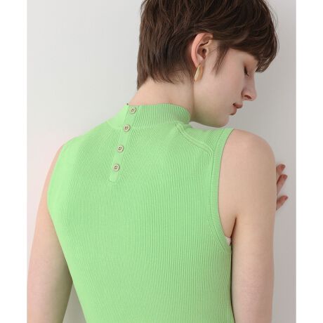 イージーケア、はおりものを選ばないノースリーブで、コンパクトなシルエットは夏のフェミニンスタイルのスタンダード。バックのエポキシ釦がさりげないアクセント。