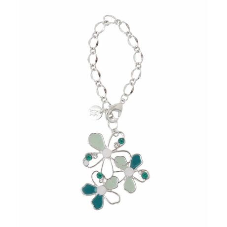 [型番:BKSGA01040]配色カラーが目を惹くメタルフラワーモチーフバッグチャーム。動くたびにさりげなく光るビジューパーツが魅力です。付け替えに便利なチェーンフック仕様で、シンプルなバッグを上品で華やかな印象にアップデートしてくれるおすすめのアイテム。色違いでお揃いのプレゼントとしても最適です。