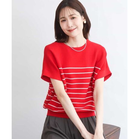 [UVカット/洗える]マリンボーダーニット
