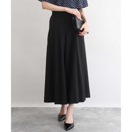 フロントにタックを取り、ひだ奥にステッチを入れることでタックがキープされ、きれいなシルエットで着用できるガウチョシルエットのパンツ。スカート見えする程よいボリューム感をきれいめ素材で仕上げることで、きちんと感もありオンシーンでも活躍してくれます。