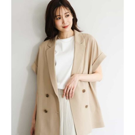ゆったりとしたカーディガンのように羽織れるフレンチスリーブデザインのチュニック丈ジャケット。着るだけでシルエットのおさまりが良く、通気性の良いリラックス感のある着こなしを叶えます。
