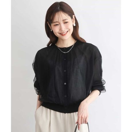 [洗える]チュールシアーニットカーディガン