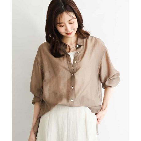 釦を留めてプルオーバーとしても、シャツ羽織りとしても活躍してくれるシャツブラウスは、日除けや冷房対策にも便利なアイテム。シアーで透け感はこなれ感があり、ゆとりのあるシルエットは様々なインナーと相性抜群です。