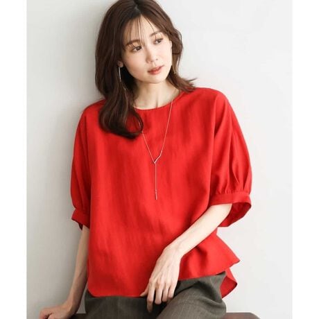 涼しさのあるリネン混のブラウスは、素材の良さもありさっと着るだけでこなれ感のある印象に。同素材のスカートもご用意しているのでセットアップでの着こなしもおすすめです。