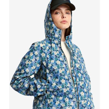 撥水機能を備えた、LIBERTYプリントのフーディジャケット。全面にあしらわれた華やかなフラワー柄が、雨の日のスタイルを軽やかに彩ります。セルフパッカブル仕様で持ち運びやすく、ウエストのドローコードでシルエット調整も可能な、機能性とフェミニンさを兼ね備えた一着です。・撥水