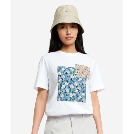 抗菌防臭と吸水速乾機能を備えた、オーガニックコットン製半袖Tシャツ。【LIBERTY】フラワープリントのパッチワークが胸元に華やかなアクセントを添え、ドロップショルダーのゆったりとしたシルエットがリラックス感のある着心地を叶えます。日常使いしやすい機能性とデザイン性を兼ね備えた一枚。・抗菌防臭