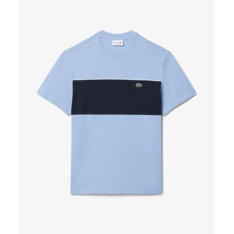 [型番:TH0896-99]フロントの2トーン切り替えに配色パイピングを効かせたパネルボーダーTシャツ・ツルッとしたタッチのコットンシングルジャージ素材・フロントにパネル状の配色切り替えを配置したデザイン・切り替えパネル上部にあしらった配色パイピング・胸元にワニロゴパッチClassic Fit