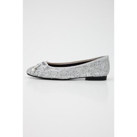 [型番:350HA112-2145]ローヒールでも華やかな足元にみせてくれる煌びやかなグリッターを散りばめたSTACCATOらしいフラットパンプス。さり気なくリボンのパールを装飾したエレガントでキュートなデザイン。普段使いにもちょっとしたパーティーにも大活躍してくれます。