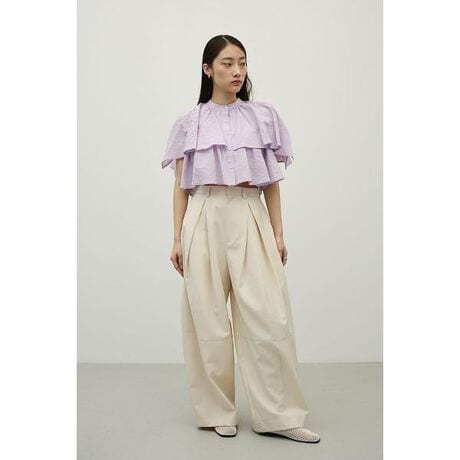 [型番:500JSB30-1471]モデル身長163cm(FREEサイズ着用)ふんわりと重なるティアードフリルが、女性らしさを引き立てる主役級ブラウス。動くたびに揺れる立体的なフリルデザインが、華やかさと軽やかさを演出します。程よいボリューム感で甘くなりすぎず、きれいめにもカジュアルにも着回し可能。デニムと合わせて大人カジュアルに、スカートと合わせてフェミニンスタイルにもおすすめです。透け感ややあり、ストレッチなし。【お手入れ方法】マシンウォッシュ可