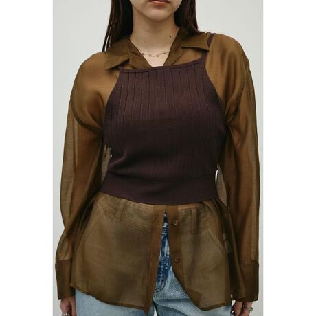 モデル身長163cm(FREEサイズ着用)強撚コットンを使用した、ドライタッチでさらりとした肌触りのアメスリニットビスチェ。ドッキングされたウエストリボンでウエストマークが可能なため、スタイリングにメリハリをプラスし、自然なスタイルアップを叶えます。シャツやカットソーにレイヤードするだけで、いつものコーディネートをアップデート。シンプルな着こなしにアクセントを添える一着です。透け感WHTややあり、ストレッチあり。【お手入れ方法】手洗い可