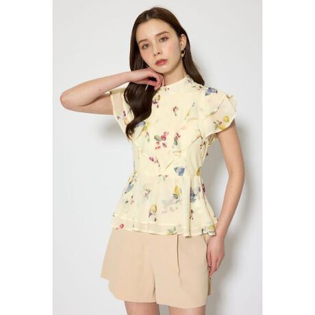 【カラフルなフルーツ柄が目を惹く、さわやかな風合いのペプラムブラウス】■ポイントriendaオリジナルのフルーツ柄を用いたペプラムブラウスが登場。ペプラムのふわりとした揺らめきが、歩くたびにゆれて気分を上げてくれること間違いなしのアイテムです!■ディテール軽やかで、程よく透け感のあるジョーゼット生地を使用したので、2枚に重なったフリル部分に奥行きが出て、より立体感あるデザインになっています。襟から繋がるリボンは前後どちらでも結んでいただけますので、その日のコーデに合わせて着用してください。■スタイリングペプラムがポイントなのでデニムのパンツやミニ合わせがおすすめです◎■生地透け感:あり裏 地:身頃:あり伸縮性:なし光沢感:なし厚 さ:薄手■商品のお気に入り登録お気に入りアイテムの再入荷・在庫1点などの通知を受け取ることができます。[注意事項]※画像の商品はサンプルです。実際の商品と仕様、加工が若干異なる場合があります。※画像の商品は光の照射や角度、お使いのモニター環境により、実物と色味が異なる場合がございます。※着用、お取り扱いの際は、アテンションタグをご確認ください。