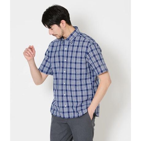 程よい大きさのネイビーチェックが爽やかな印象を与える半袖ショートボタンダウンシャツ。軽やかな素材感で、暑い季節でも快適に着用できる一着です。