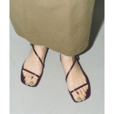 細いナローストラップをアシンメトリーにデザインしたサンダル。