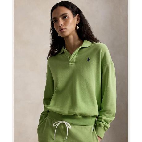 アイコニックなポロシャツにインスパイアされた薄手のフリースプルオーバー。平編みの襟、2つボタンの前立て、ポニー刺繍などのシグネチャーのディテールが特徴・リラックスフィット / 腰丈・ポロカラー / 2つボタンの前立て・長袖、リブカフス / リブの裾・左胸にシグネチャーのポニー刺繍・Ralph Laurenのコットン製品を選ぶことで、環境の保護と修復に努めながら、コットン業界が今後も成長を続けられるように支援するBetter Cotton(TM)ミッションへのRalph Laurenの取り組みをサポートすることになります・本商品は物質収支方式に則って材料を調達しているため、全ての製品にBetter Cotton(TM)が含まれない可能性があります。・モデル身長178cm、着用サイズS※商品の色味は、光のあたり具合など諸条件により色感が多少異なって見える場合がございますので予めご了承下さい。 【素材】・本体:綿 84%、ポリエステル 16%【生産国】ベトナム