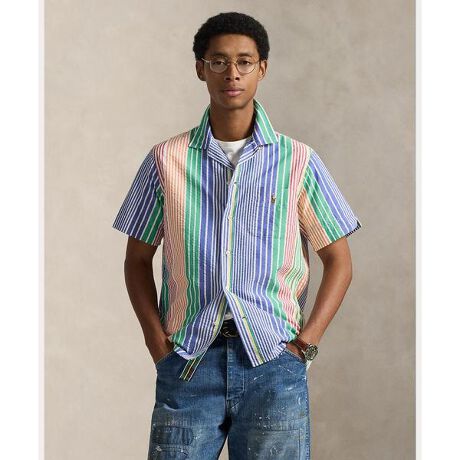 薄手のコットンシアサッカーを使用し、カラフルなストライプパターンとシグネチャーのポニー刺繍をあしらったキャンプシャツ・クラシックフィット:胸、ウエスト、袖にかけてゆったりとしたカット、低いアームホール・キャンプカラー / ボタン付き前立て・半袖 / 左胸にパッチポケット・プリーツ入りのバックヨークで肩のなめらかな曲線を強調・ストレートな裾・ポケットにシグネチャーのポニー刺繍・モデル身長185cm、着用サイズM※注意:柄の配置は、商品によって異なります。 【素材】・本体:綿 100% 装飾部分を除く【生産国】インドネシア