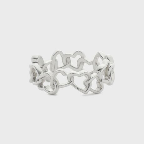子供のころ夢中で遊んだ、色とりどりのパーツをつなげるプラスチックチェーン。その記憶をモチーフに、フルエタニティのピンキーリングに仕立てました。透かしのハートがランダムに連なるシルエットは、遊び心を感じさせながらも上品な輝きを放ちます。軽やかなデザインは、重ね着けやコーディネートも自在に楽しめる1本です。※サイズ直し不可。