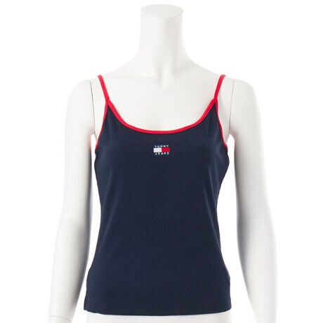 フィット感のあるテレコ素材を使った、スリムタイプのキャミソールトップ。伸びが良くて動きやすく、アクティブに動く日にもぴったりのアイテムです。配色のパイピングから繋がる細身のストラップが、さりげなく女性らしさをアピールします。フロントには、やや大胆にフラッグロゴをあしらいました。インナー使いにもおすすめです。