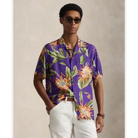 カリブ海の透き通った水と鮮やかな夕日にインスパイアされたコレクションのひとつ。フローラルプリントとココナッツシェルボタンを組み合わせ、トロピカルなビーチ風ルックを演出した薄手のキャンプシャツ・クラシックフィット:胸、ウエスト、袖にかけてゆったりとしたカット、低いアームホール・キャンプカラー / ボタン付き前立て / ココナッツシェルのボタン・半袖・左胸にパッチポケット・プリーツ入りのバックヨークで肩のなめらかな曲線を強調・ストレートな裾・モデル身長185cm、着用サイズM※注意:柄の配置は、商品によって異なります。 【素材】・本体:レーヨン 100%【生産国】ベトナム