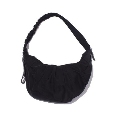 アシンメトリーなパネリングと、計算された無数のタックが独特な立体感を生み出すボディバッグ。