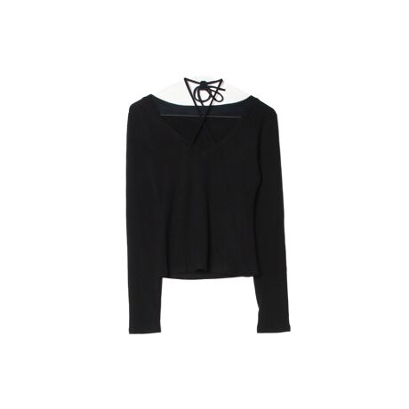 ・胸元でクロスする首紐デザインがポイントの長袖トップス。
