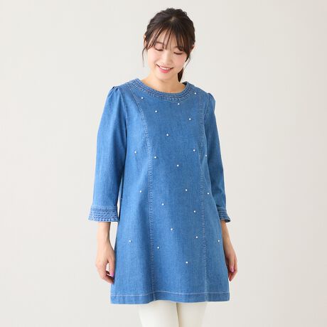 【伸縮性◎】パールスタッズデニムチュニック