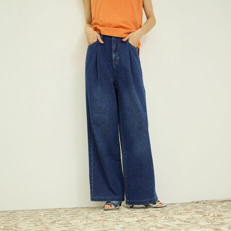 ゆったりとした穿き心地と旬のシルエットを両立した「ウエストゴムタックワイドデニム」