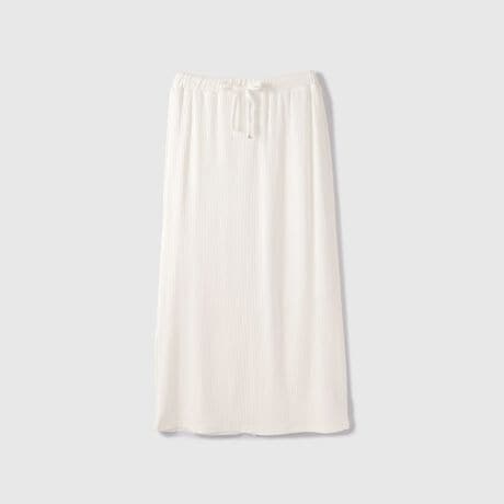 ウエストはゴム仕様なので、トップスをインしてもアウトでもバランスよく決まるのが魅力。