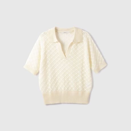 透け感のある編地に、凹凸のあるジャガードパターンを組み合わせることで、奥行きのある表情を演出。