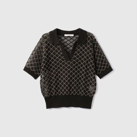 透け感のある編地に、凹凸のあるジャガードパターンを組み合わせることで、奥行きのある表情を演出。