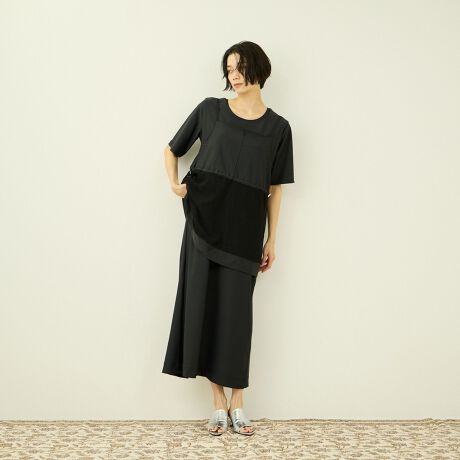 ウエスト切り替えで自然なメリハリを演出し、ゆったりとしたシルエットながら女性らしいラインを引き立てます。